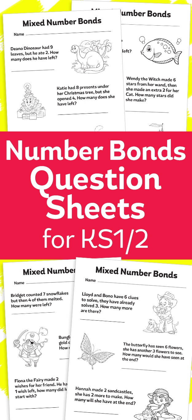 Number Bonds to 10 Word Problem Activity Cards - Twinkl The illustrated word problems will also give them a better understanding of how math problems can relate to their everyday lives and are not only for the classroom. What are number bonds? Number bonds are pairs of numbers that add together to form another number. For instance, the following number pairs are all number bonds that add up to 10. 7 ...